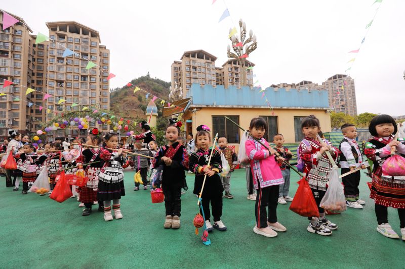 据了解,剑河县幸福社区中心幼儿园现有学生300多名,建成以来为易搬群众的子女就近入园提供了方便。持续性开展特色民族文化进校园是该校的一项常态化特色教学活动。活动的开展,不仅让传统民族文化得到进一步的宣介和传承,也让孩子们在欢乐的氛围中,增强文化自信。