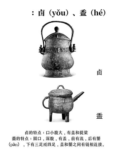 尊、罍很大,还有盖子防止挥发,够喝好几天了,但太重,拿起来不方便,怎么办?好办,有卣啊;