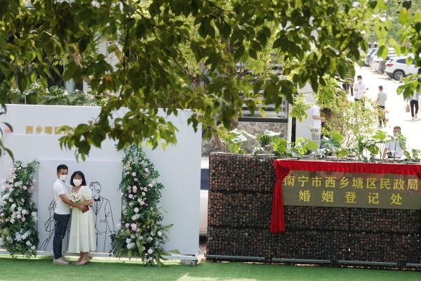 广西南宁市西乡塘区上尧码头江北公园婚姻登记处从10月31日起正式启用,这是广西首家公园式婚姻登记处。新人们在这里收到了专属的浪漫和特别的仪式感。