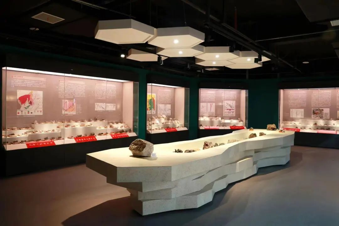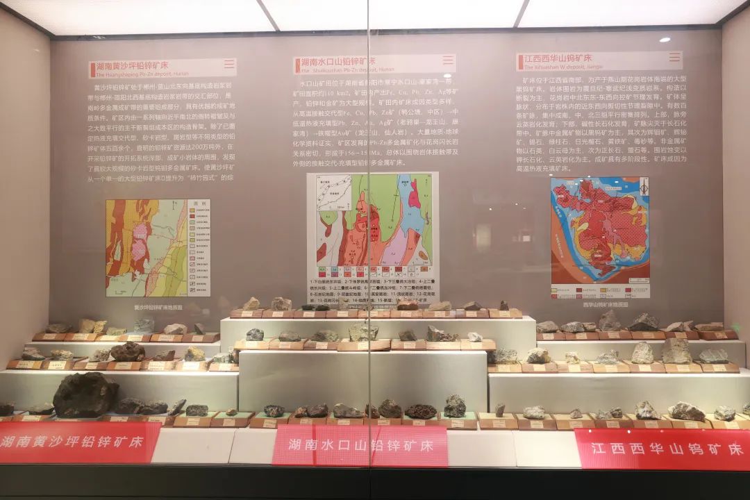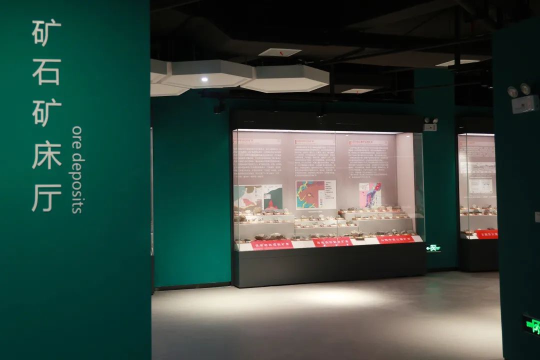 矿石矿床厅:按照矿床的成因分类展示各种矿床类型的成套矿石标本,重点展示中南地质行业特色的工作成果-有色金属和贵金属矿床。