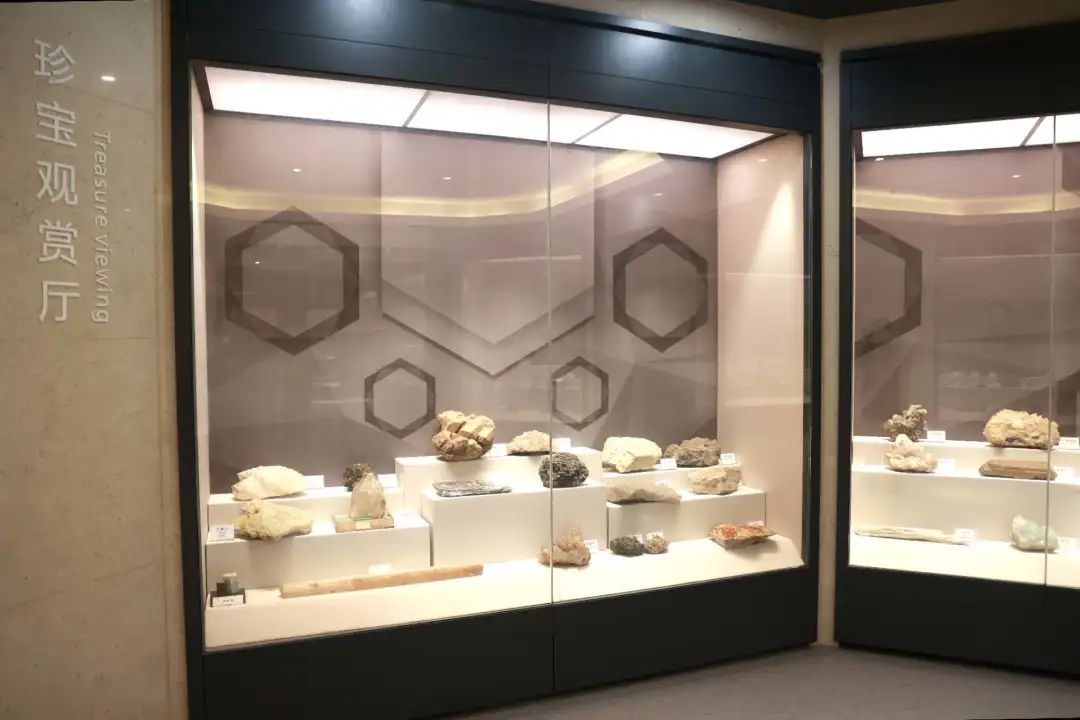 珍宝观赏厅:主要展出大自然这位 “卓越的雕刻家”的杰出作品,如天然产生的古生物、矿物和岩石珍品,包括宝石、玉石和观赏石等展品。