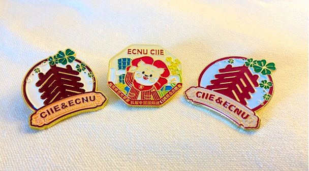 华东师范大学进博会徽章(中间为第五届徽章)