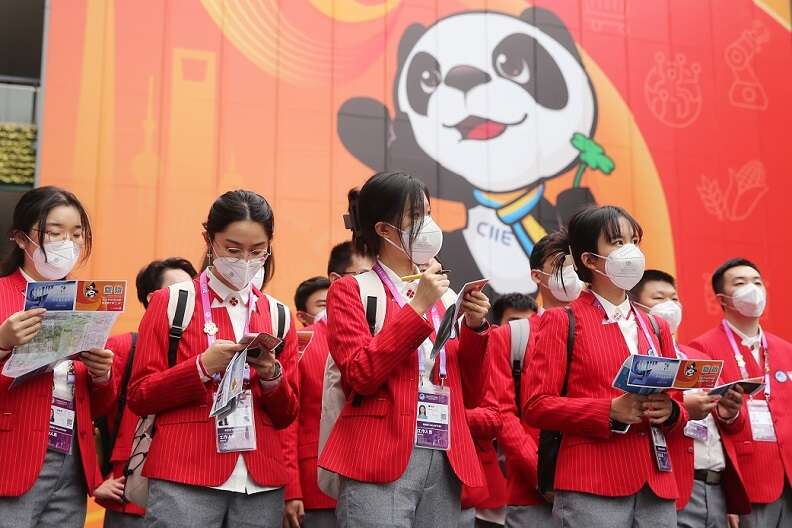 第五届进博会进入倒计时,国展中心里再次出现了青春风景线。