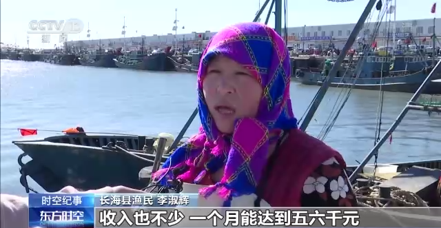 长海县渔民 李淑辉:现在海富了,岛上的加工厂的生意越来越好,我们很容易就能找到工作,收入也不少,一个月能达到五六千元,而且一年四季(工作)都不间断,再也不用外出打工了。