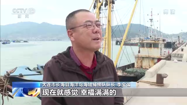 大连市长海县海洋岛海域捕捞队队长 李宝强:近些年,工资年年增加,不像以前自己(海穷后)干时,总担心自己挣不到钱或者赔钱。现在这种思想(负担)没有了,现在就感觉幸福满满的。