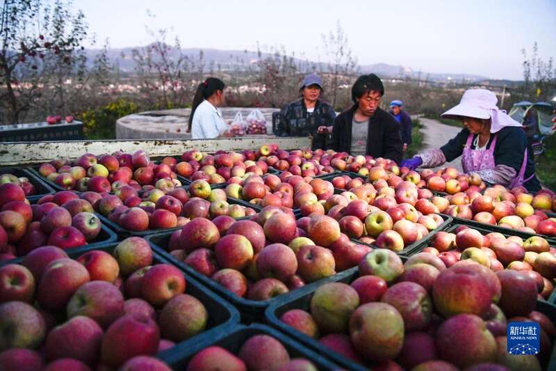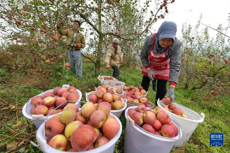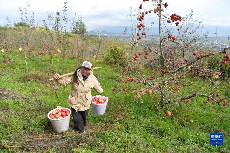 深秋时节,贵州省威宁彝族回族苗族自治县种植的苹果陆续收获。果农忙着采摘、搬运、包装苹果,供应市场。