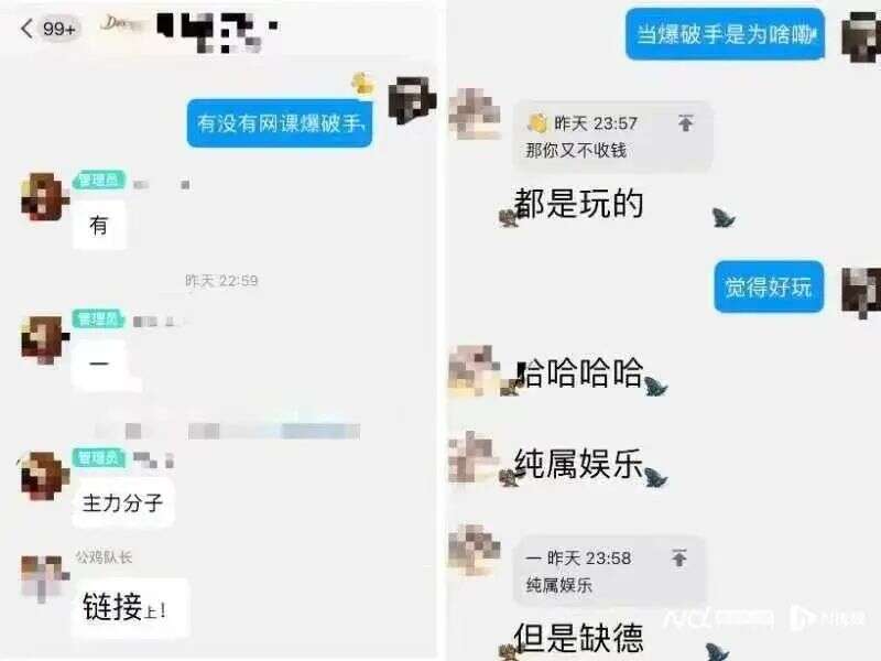 有“网课爆破手”告诉记者,3元就能“爆破”,只需提供网课会议号。他们可以开麦骂人、当堂播放低俗视频、在公屏涂鸦等。同日,记者添加到“爆破”群联系人。其中一名“网课爆破手”直接表示价格好商量,主要是“图个乐”,价格便宜就“捣捣乱”。