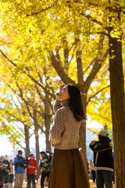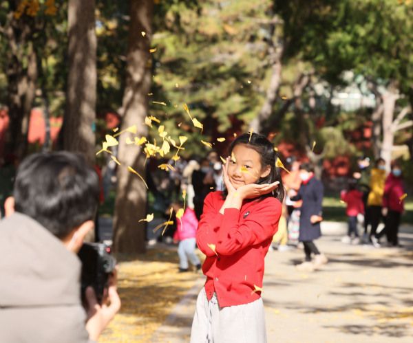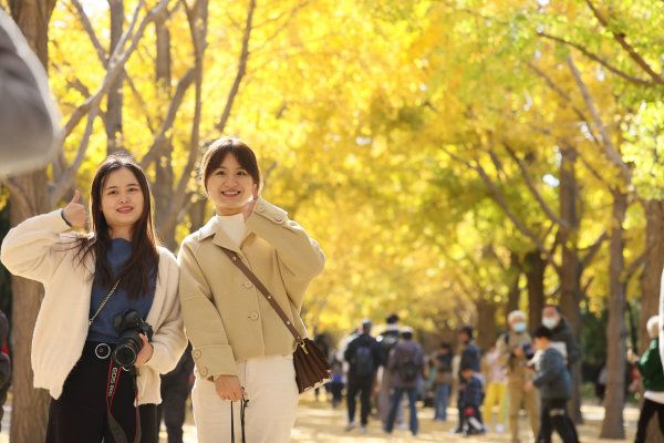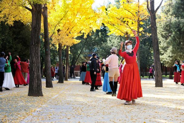 2022年11月5日,北京,阳光明媚,市民到以银杏风光著称的地坛公园赏秋色度周末。