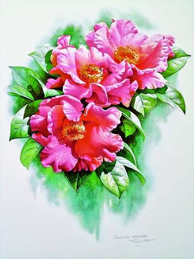 山茶花(水彩画)曾孝濂