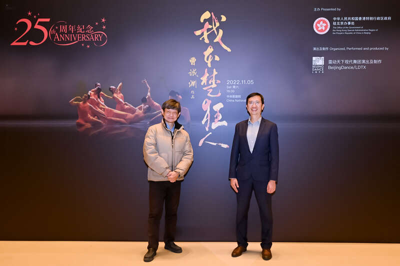 香港特区政府驻京办主任梁志仁(右)与香港知名编舞家曹诚渊(图片来源:香港特区政府驻京办)
