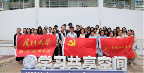 近日,厦门大学外文学院2020级翻译硕士党支部与新闻传播学院2020级专业硕士党支部“学习党的二十大,青春著华章”主题联学共建活动在海韵“一站式”学生社区党团活动室举行,双方党支部书记何欣璐、陈小静共同主持活动。新闻传播学院党委副书记李芬芬、外文学院党委副书记张胜强、两院党务秘书、两个支部的党员以及入党积极分子代表参加活动。