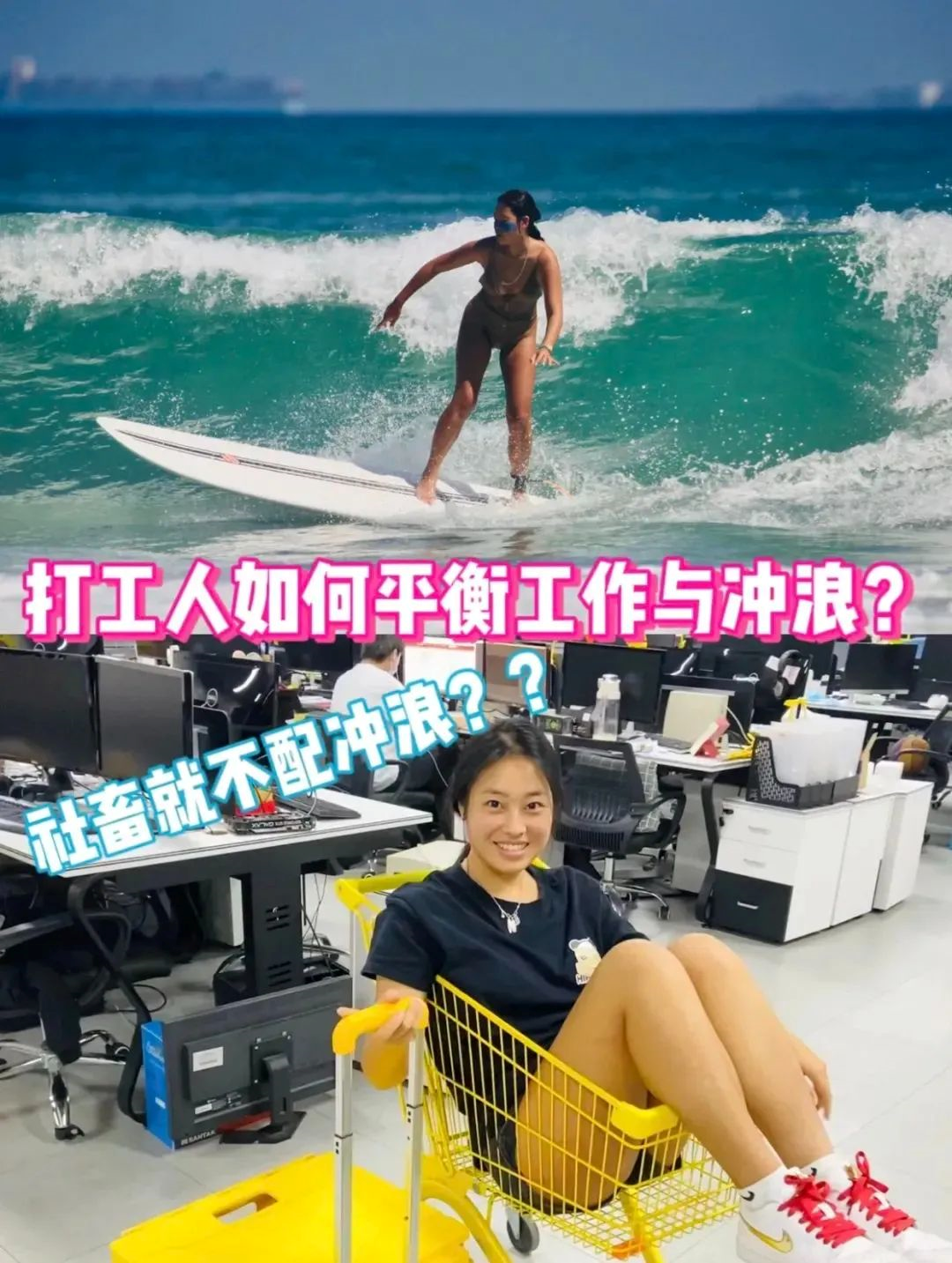 “冲浪可以晚几年再做,在物质和精神条件更优渥的时候去做,而不是为了它而放弃其他让你成长的机会。因为冲浪这件事是不会被忘掉的,它真的会上瘾;有些机会错过就不会再有,但冲浪一直都在。就像我,即使是大小周,也会冲向海岸。”