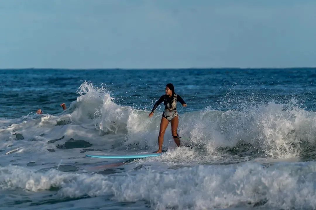 佳佳练习了三四个月,抓浪的成功率终于达到30%左右——对于冲浪运动来说,算是入了门。
