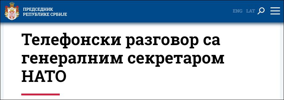 另据塞尔维亚总统新闻办公室发布的声明,斯托尔滕贝格和武契奇还讨论了驻科部队的作用以及塞尔维亚武装部队总参谋长与北约驻科索沃-梅托希亚部队指挥官直接接触的重要性。