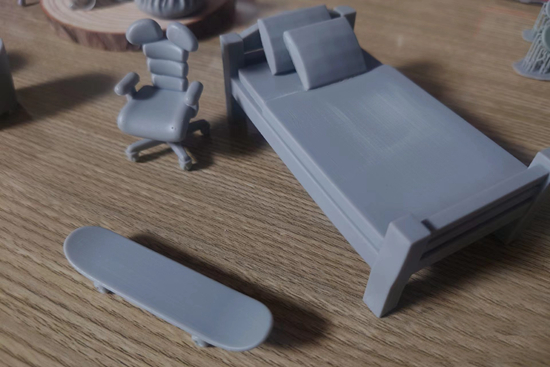 8月,一家人搬到了刚装修好的新房里,她“给儿子打印一个家”,1∶16比例的滑板、转椅、微缩床、扶手椅的模型……凑成了一套家具。