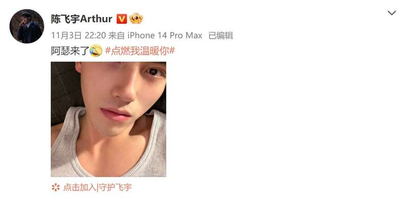 阿瑟是陈飞宇的英文名音译,源自综艺节目中陈凯歌、陈红夫妇对他的称呼。之后,网友没少围绕着“阿瑟”作梗,很多网友都是善意的调侃。所以,陈飞宇也欣然加入玩梗的行列。《点燃我》首播时他在微博上晒自拍照,写了四个字“阿瑟来了”。