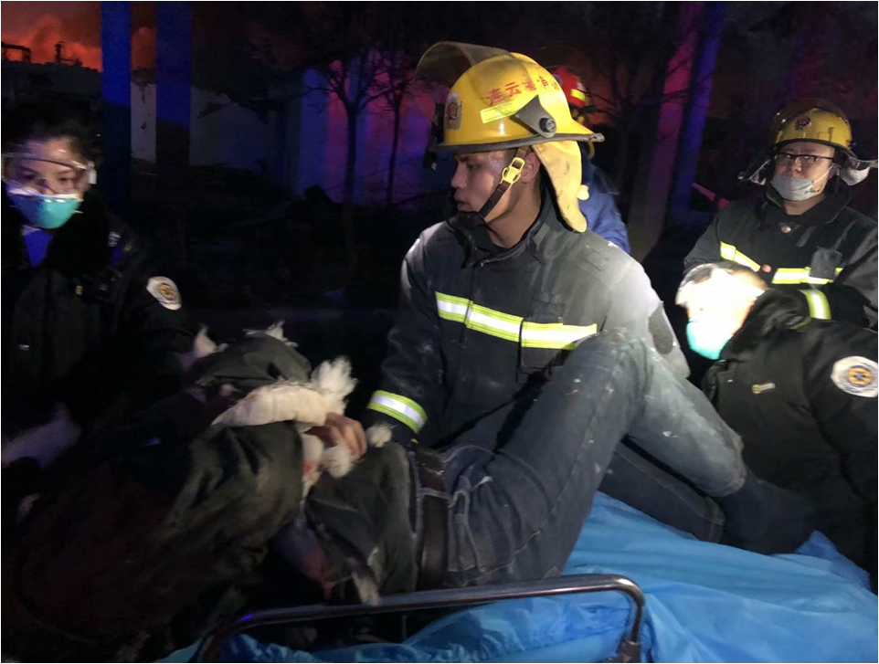 望着满目疮痍的事故现场,从未见到过的巨大火情,杨可已来不及多想,在收到“进入厂区,搜救被困人员”的命令后,迅速随队深入火势依然凶猛的核心地带。