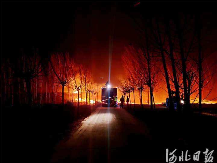 图为永清县樱花路消防救援站扑救“3.18”大风天气火灾。裴雷摄