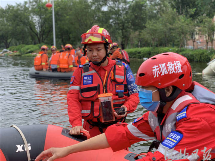 图为2021年7月,文安县赤狐应急救援队紧急驰援河南内涝灾区开展救援和转运工作。董悦摄