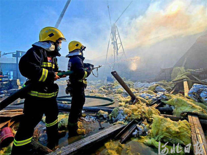 图为永清县樱花路消防救援站正在扑救库房火灾。杨万军摄