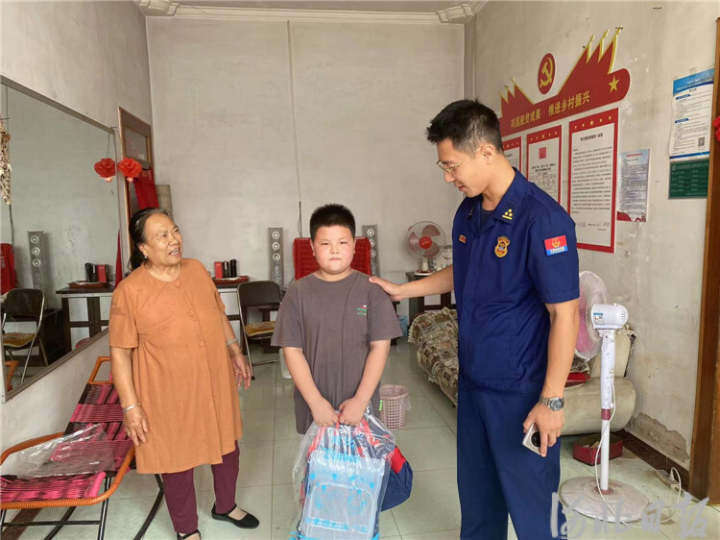 图为永清县樱花路消防救援站指战员慰问困难家庭学生。黄俊凯摄