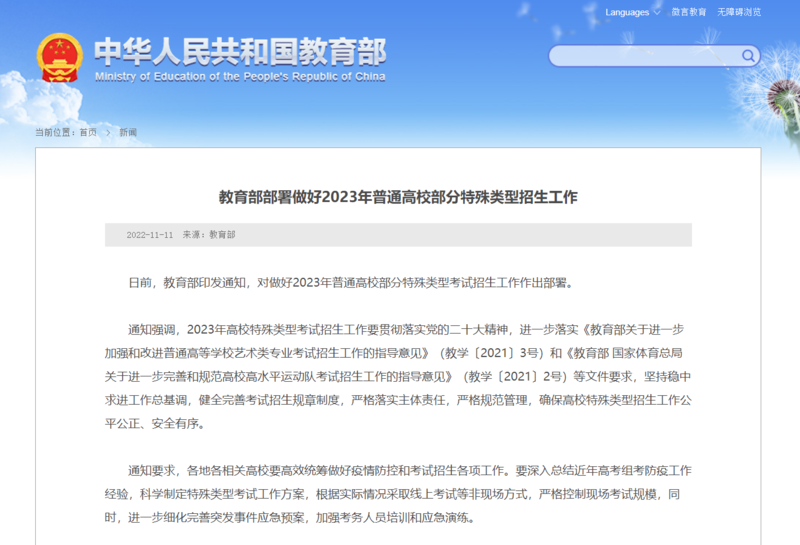 通知强调,各地各相关高校要进一步加强特殊类型招生工作规范管理。