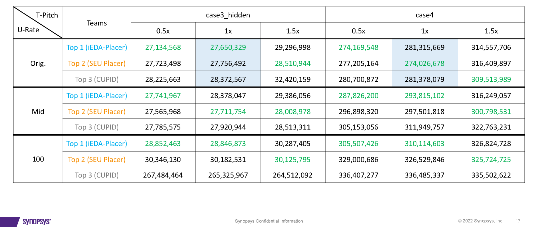 本届CAD竞赛中,东南大学国家ASIC工程中心的 SEU Placer团队 (团队成员:梅扬杰,申福恒,施跃剑,刘鸿,朱自然老师,杨军老师)参加了由新思科技公司(Synopsys,国际三大集成电路设计EDA公司之一)出题的CAD Contest@ICCAD赛题“3D Placement with D2D Vertical Connections”,本赛题针对后摩尔时代备受关注的芯粒(chiplet)中的3D布局问题,鼓励参赛队伍探索出能够进行网表划分以及基于双裸片3D布局的创新解决方案,用以实现堆叠3D双裸片系统的最佳性能。SEU Placer团队设计的算法流程,以最小化线网总线长为目标 ,对于给定的网表能够通过划分和布局优化得到极佳的3D布局结果 ,最终获得了第二名 的好成绩。