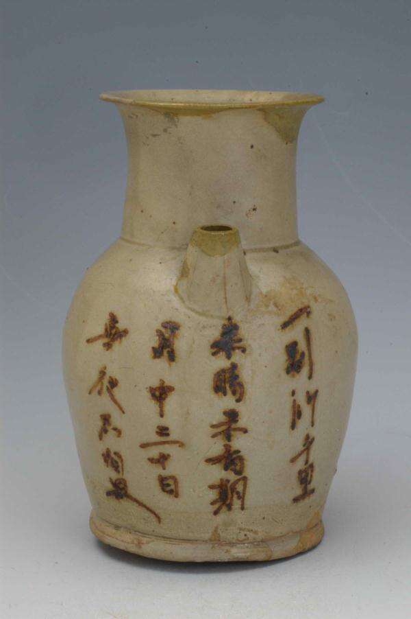 青釉褐彩“一别行千里”诗文壶。长沙博物馆供图