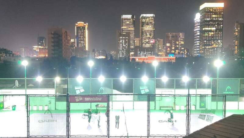 “原本球场没有这么亮。”在四方新城小区内,张先生与网球场已做了多年的“友邻”:他所在的3号楼位于“四方俱乐部”对面,屋顶网球场的高度又恰与他所居住的楼层持平,长期以来相安无事。据张先生回忆,网球场最初晚上并不营业,今年8月开启夜场后,才重新装修增设了照明设施。装修后,9盏崭新的高亮照明灯“拔地而起”。