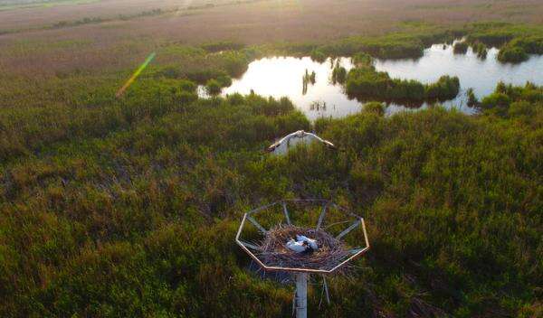 为给鸟类一个安稳舒适的家,保护区重点实施黑嘴鸥、东方白鹳、鹤类等关键物种栖息地保护,架起人工巢、建起繁殖岛。新华网发(杨斌 摄)