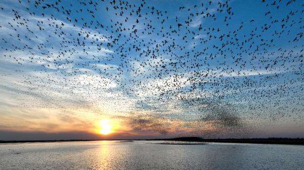 每年有数百万只鸟儿经由这里迁徙,其中一部分在此越冬和繁殖。新华网发(杨斌 摄)