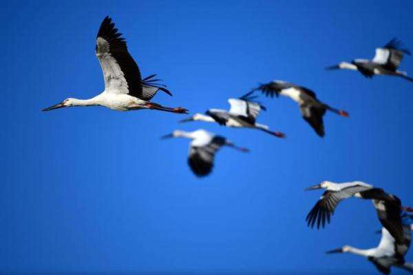 黄河三角洲自然保护区是鸟儿迁徙的重要中转站,全球9条鸟类迁徙路线中,东亚-澳大利西亚和环西太平洋2条线路经过黄河三角洲。新华网发(杨斌 摄)