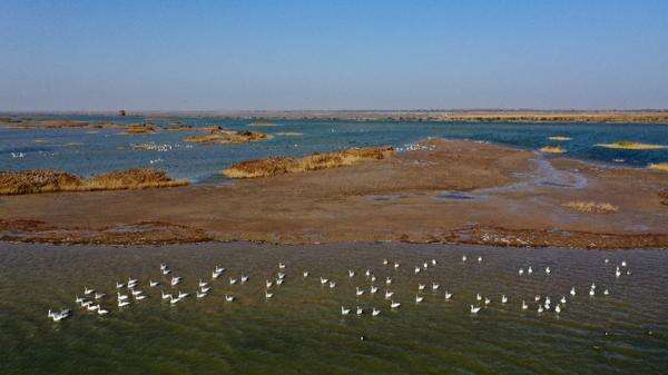 昔日“退海之地”,如今水清岸绿、群鸟翔集。新华网发(杨斌 摄)