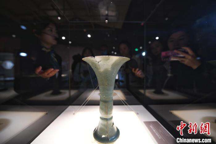 南宋德寿宫遗址博物馆展出的文物吸引媒体记者 王刚 摄