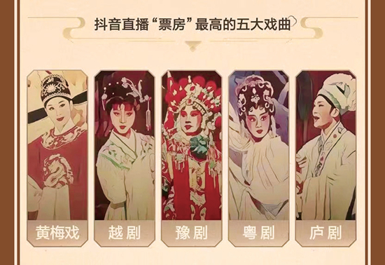 据《2022抖音演艺直播数据报告》,黄梅戏在抖音直播“票房”最高。