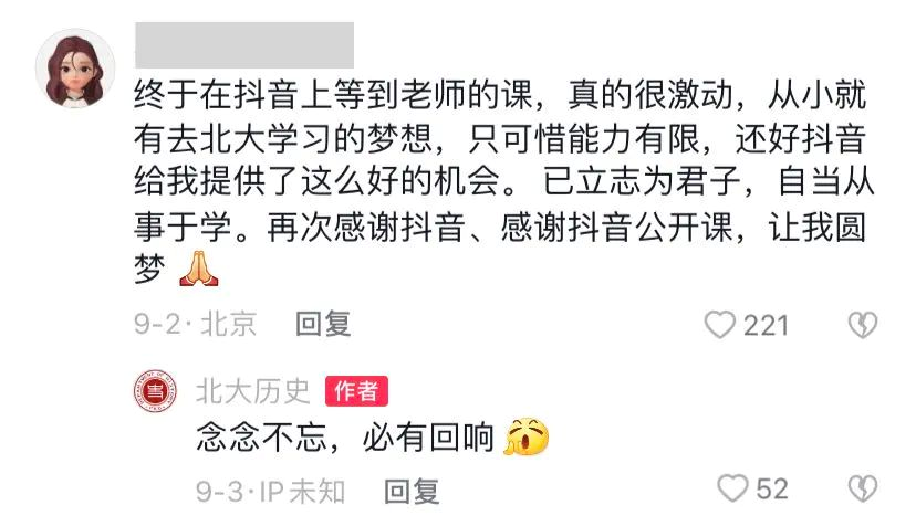 网友的热情讨论让“北大历史”抖音团队“感到十分欣喜”: