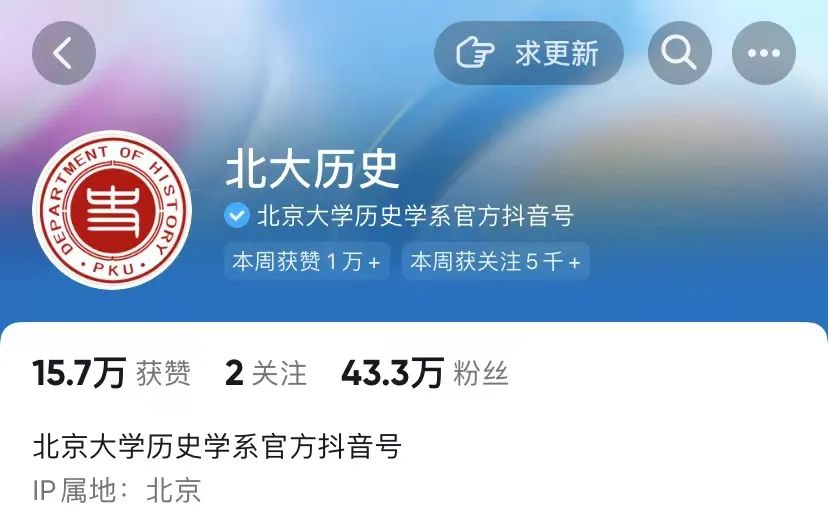 “北大历史”“北京大学”等短视频账号的诞生,打破了知识的边界,还原了知识与教育的本质,展现了学术的开放与包容。