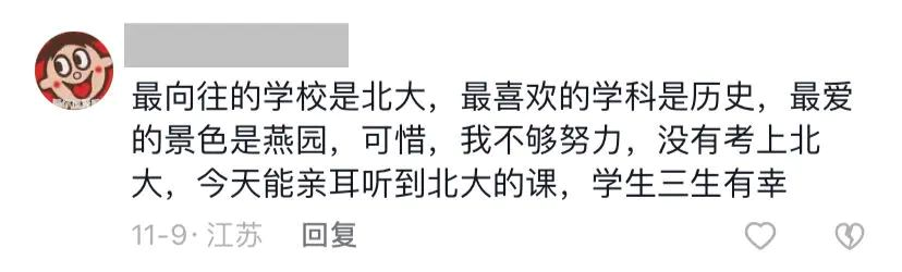 北大名师成“顶流”,“大师课”成网红课,从评论区的一隅,不难窥见网友对这门课的欢迎与喜爱,有些讨论甚至与课堂上一样严肃。在课程进行到有关中国古代史官的定义、孔子传六艺的学术争论时,有人点赞,也有很多人拿出各种各样的证据反驳。