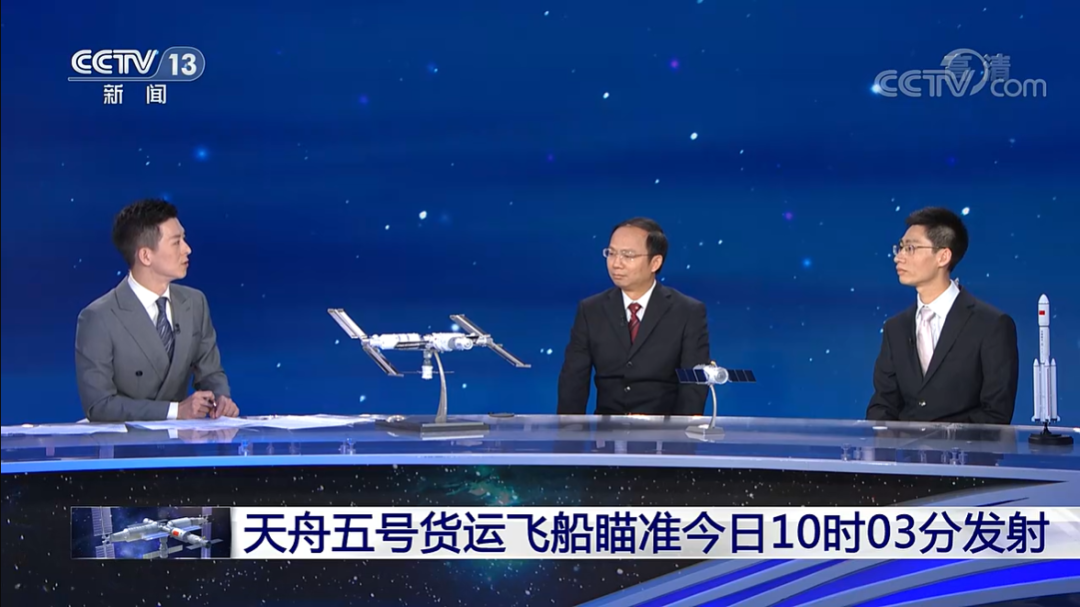 央视新闻频道《新闻直播间》(航天特别节目)直播天舟五号发射情况,北航2005级硕士、2011届博士,长征七号甲总体副总师徐利杰(右一)作为嘉宾进行介绍