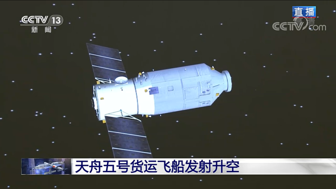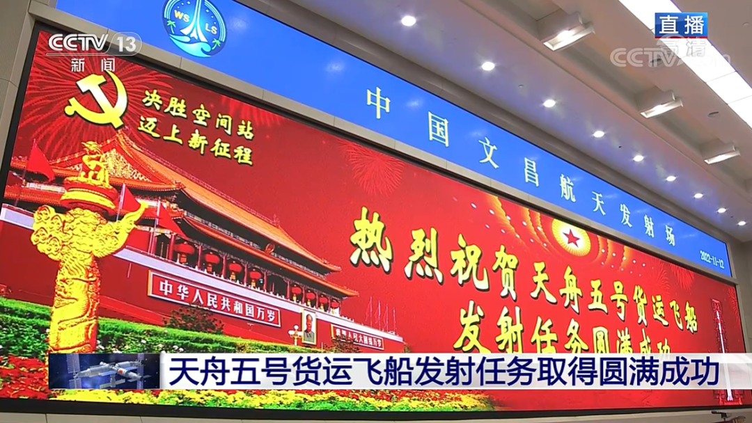 据中国载人航天工程办公室消息,北京时间2022年11月12日10时03分,搭载天舟五号货运飞船的长征七号遥六运载火箭,在我国文昌航天发射场准时点火发射,约10分钟后,天舟五号货运飞船与火箭成功分离并进入预定轨道,飞船太阳能帆板顺利展开工作,发射取得圆满成功。后续,天舟五号货运飞船将与在轨运行的空间站组合体进行自主快速交会对接。
