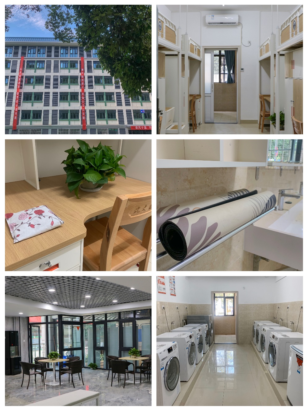 这些年,学校投入4亿元建设学生宿舍,将数千名校外居住学生回迁校园。宿舍的设计处处体现“以学生为本”的理念,大部分为4人间,每间房内独立卫浴、空调、单人床、衣柜等一应俱全。在每个楼层的公共空间,设有共享洗衣房、自习区、讨论区等活动区域。此外,还专门设置了无障碍房间。