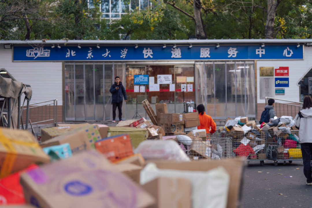 无论是日常网购,还是寄送礼物、信件、开学行囊,当物流信息显示“发出”,即将抵达的包裹便构成了收件人的持续期待。位于北京大学34B楼旁的近邻宝快递服务中心,就承载着北大师生日常的这份期待。天南海北的包裹抵达这里,消杀、分类投递、等待领取。师生日常的寄件需求也在这里得到满足。