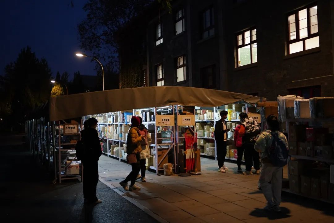10月26日起,近邻宝的师傅们就开始忙活起“双十一”的第一项准备工作——搭建临时货架。他们首先联系学校保卫部将近邻宝柜台前边的空地清理出来,再搭建棚屋、放上货架,为了保证快件投、取的秩序,师傅们还精心设计了货架编号,贴上醒目的“X号货架”指示牌。为了方便同学们夜间取件,他们得给棚屋接电,装上电灯、自动签收仪等设备,彻夜亮灯。这些庞杂的工作,“六个人一起,要不间断地连续干上四小时才能完成”,近邻宝的负责人张兆一师傅介绍道。