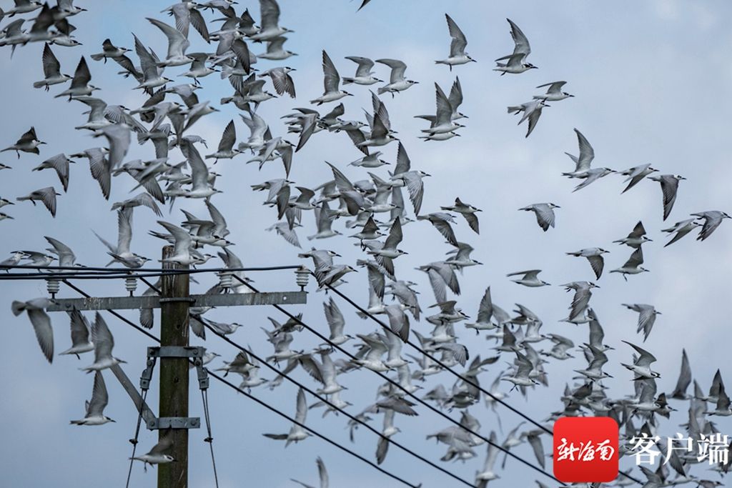 有鸟自远方来,不亦乐乎!眼下正值越冬候鸟迁徙季节,成百上千的须浮鸥们,飞越千山万水,在温暖的海口三江湾湿地栖居过冬。它们聚在一起栖息、觅食、翱翔,成为一道靓丽的风景线。