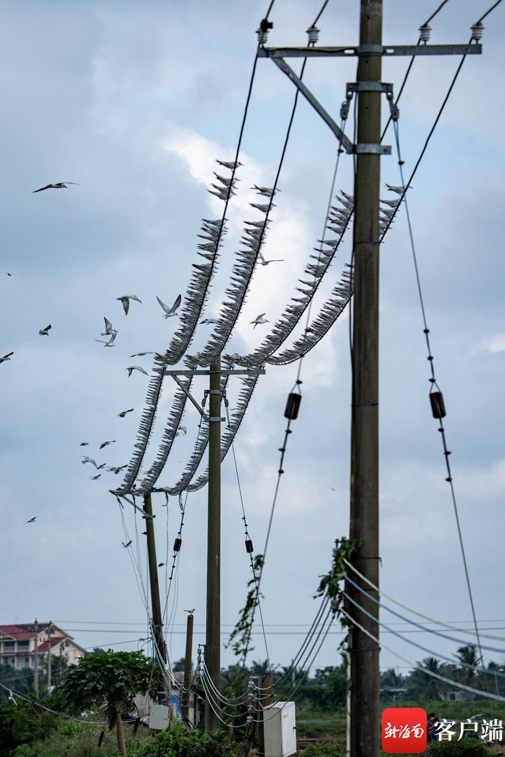 须浮鸥常数十只、甚至上百只成群在一起,场面颇为壮观。在电线杆上集会的须浮鸥们,整齐得像列队的士兵,等待接受检阅。展开双翅的须浮鸥,或极速俯冲捕食,或轻快有力的振翅,毫不吝啬展现自己流线型的身姿。