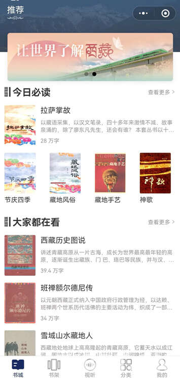 图为“掌读西藏”移动应用“书城”界面