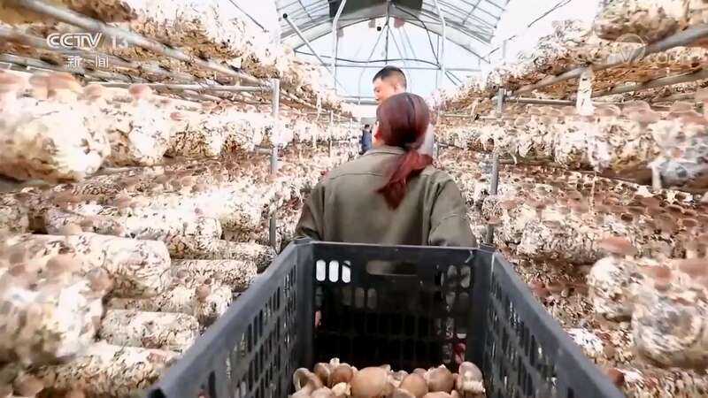 杨九红家开始今年第一次香菇采摘。他有四个香菇大棚,每个棚里有上万个菌棒。