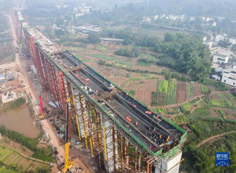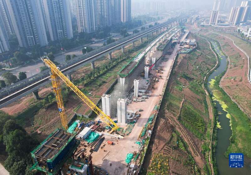 这是11月19日拍摄的重庆城轨快线璧铜线璧山段施工作业现场(无人机照片)。