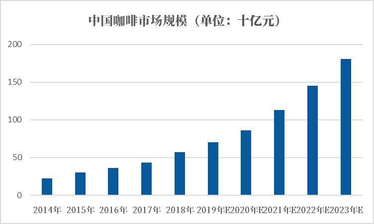 过去在很长一段时间内,咖啡几乎都是外资品牌的天下。而近两年来,本土咖啡品牌迅速崛起,整个行业竞争也愈发激烈。中国咖啡市场历经从尝新体验、社交体验、多元化消费场景更迭,直到今天的品质化消费阶段,实现了产品初级需求到自我价值满足的需求蜕变。天眼查11月22日发布的数据显示,截至目前,我国咖啡相关企业17万余家,其中,2021年新增注册相关企业2.3万余家,新增注册相关企业增速达到18.9%;从地域分布来看,广东、云南以及江苏三地相关企业数量位居前列,42.2%的相关企业成立于1-5年内,成立于1年内的企业占比18.8%。根据弗若斯特沙利文数据,中国咖啡市场2013-18年高速发展,CAGR达29.54%,并预计以25.99%的复合增长率继续增长,2023年咖啡市场规模预计将达1806亿元。