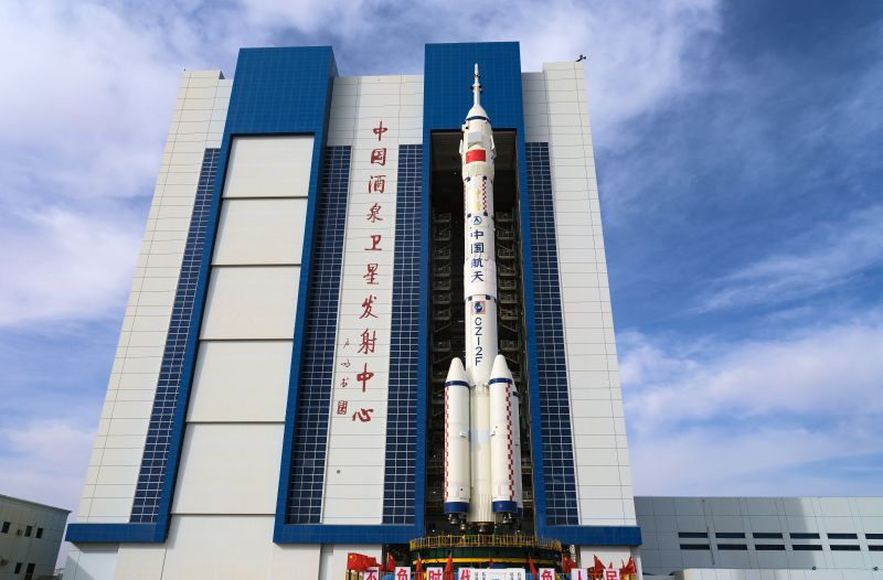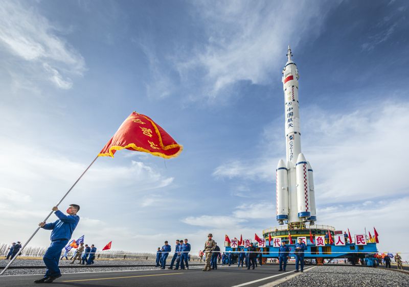 2022年11月21日下午,酒泉卫星发射中心,神舟十五号载人飞船与长征二号F遥十五运载火箭组合体转运至发射区,计划近日择机实施发射。